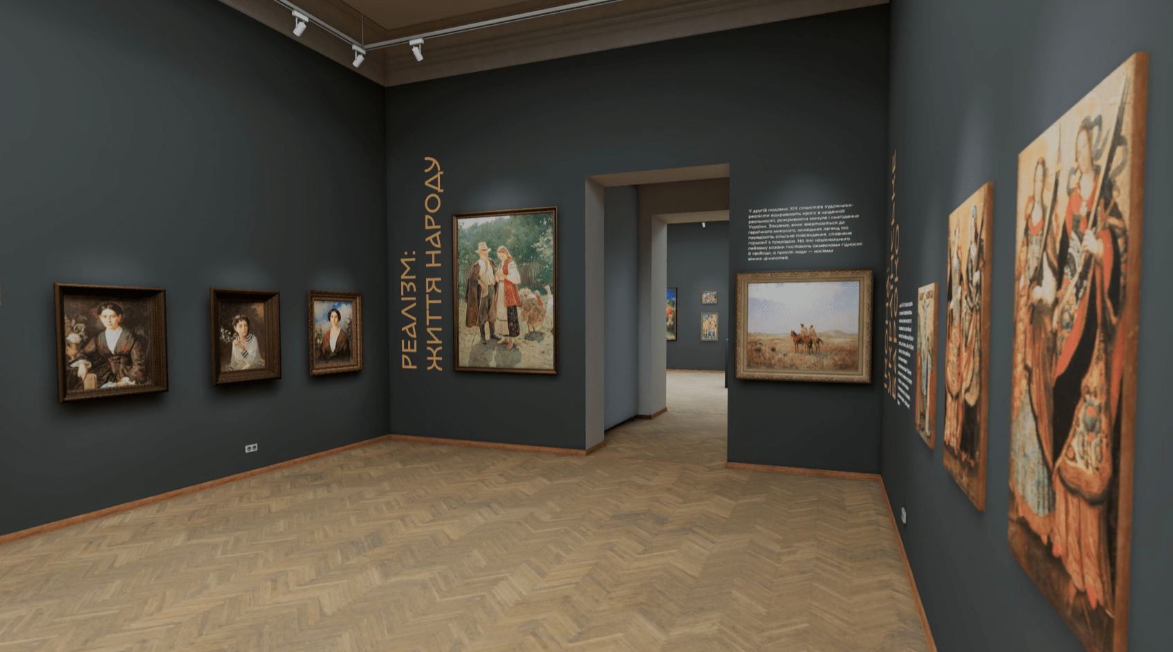 Користувач може взаємодіяти з експонатами, змінювати ракурси, наближатися до робіт, дізнаватися історії митців.